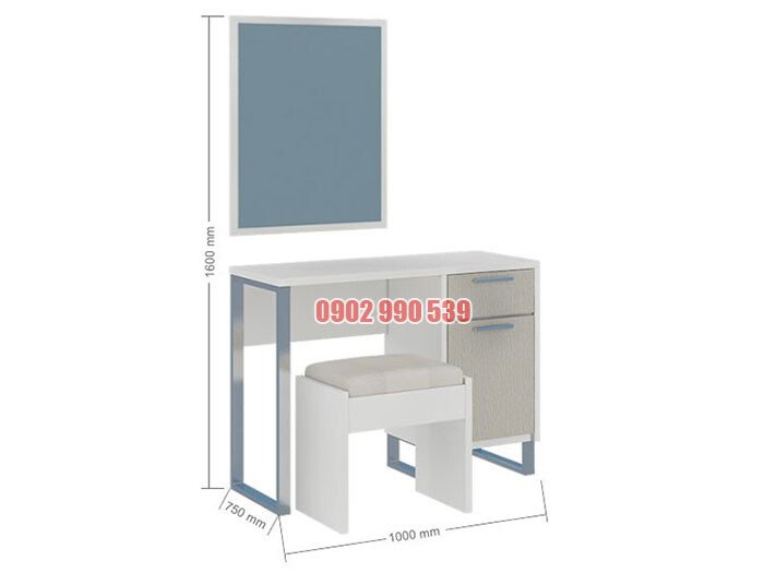 - Bàn phấn Zeus 1 hộc kéo, 1 cánh mở với chân sắt cao được sơn tĩnh điện bền đẹp, thoáng mắt, dễ dàng vệ sinh dưới gầm. Bàn phấn có gương đi kèm, ghế đôn bọc vải giúp người ngồi êm ái và thoải mái.