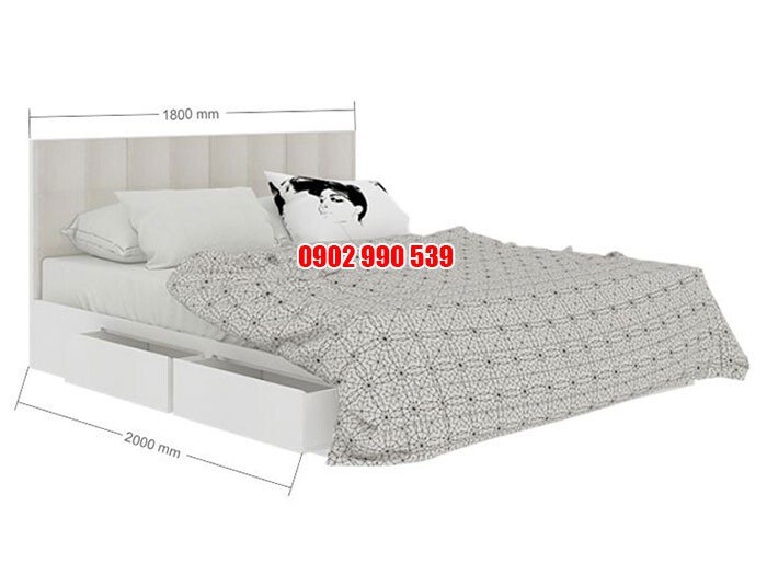 - Kích thước: Lọt lòng: 1800 x 2000mm, Phủ bì: 1850 x 2075mm, Đầu giường cao 950mm