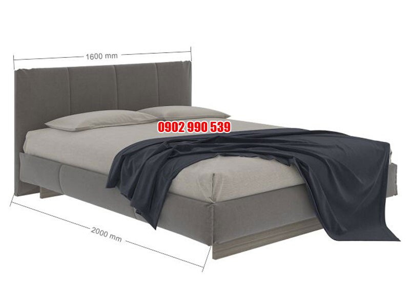 + Lọt lòng: 1600 x 2000mm, Phủ bì: 1600 x 2050mm, Đầu giường cao 950mm
