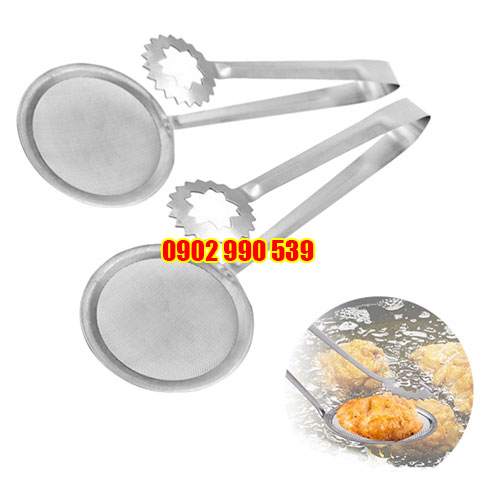 - Kẹp gắp thực phẩm có lưới ráo dầu tiện lợi hữu ích khi bạn chế biến các món chiên, tay cầm dài, chống nóng, chất liệu inox an toàn khi sử dụng.