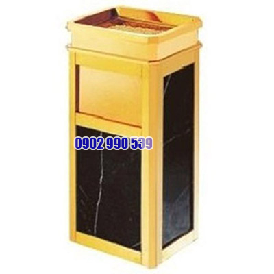 - Thùng rác đá hoa cương bằng chất liệu inox mạ vàng có gạt tàn thuốc bên trên.