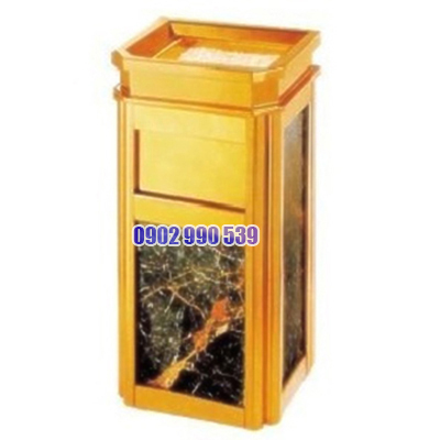 - Thùng rác inox mạ vàng đá hoa cương là sản phẩm cao cấp chuyên dùng cho khu vực sảnh, thang máy của các tòa nhà văn phòng, khách sạn, nhà hàng...Cửa xả rác bên hông có nắp đậy cùng chất liệu inox mạ vàng cao cấp, không chỉ phối hợp hài hòa với khung sườn, mà còn có tác dụng ngăn mùi khó chịu từ rác thải bên trong.