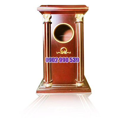 - Thùng rác gỗ có gạt tàn hình vuông, thân được pha 2 màu nâu vàng độc đáo, có đế loe rộng chắc chắn, kiểu dáng thiết kế đẹp, trang trọng.