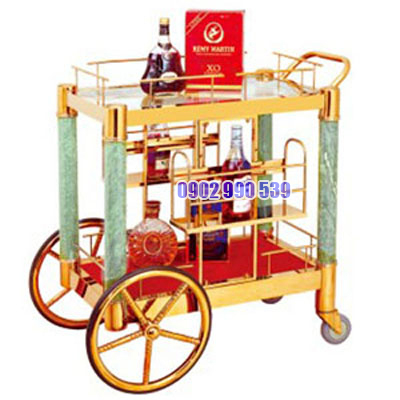 - Xe đẩy có thiết kế hiện đại với 3 tầng để rượu kết hợp với những chi tiết mạ vàng tinh xảo với đá xanh. Đặc biệt trong thiết kế tầng trên được làm từ kính chịu lực cực kỳ bền bỉ.